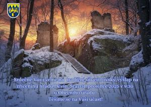 Srdečně Vás zveme na tradiční silvestrovský výšlap na zříceninu hradu Děvín. Sraz 31. prosince 2025 v 9:30 u Obecního úřadu. Těšíme se na Vaši účast!
