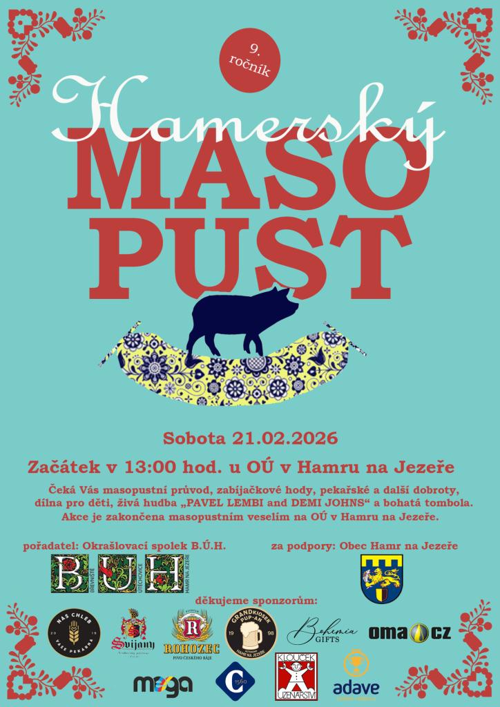 Sobota 21.2.2026 Začátek v 13:00 hod. u OÚ v Hamru na Jezeře