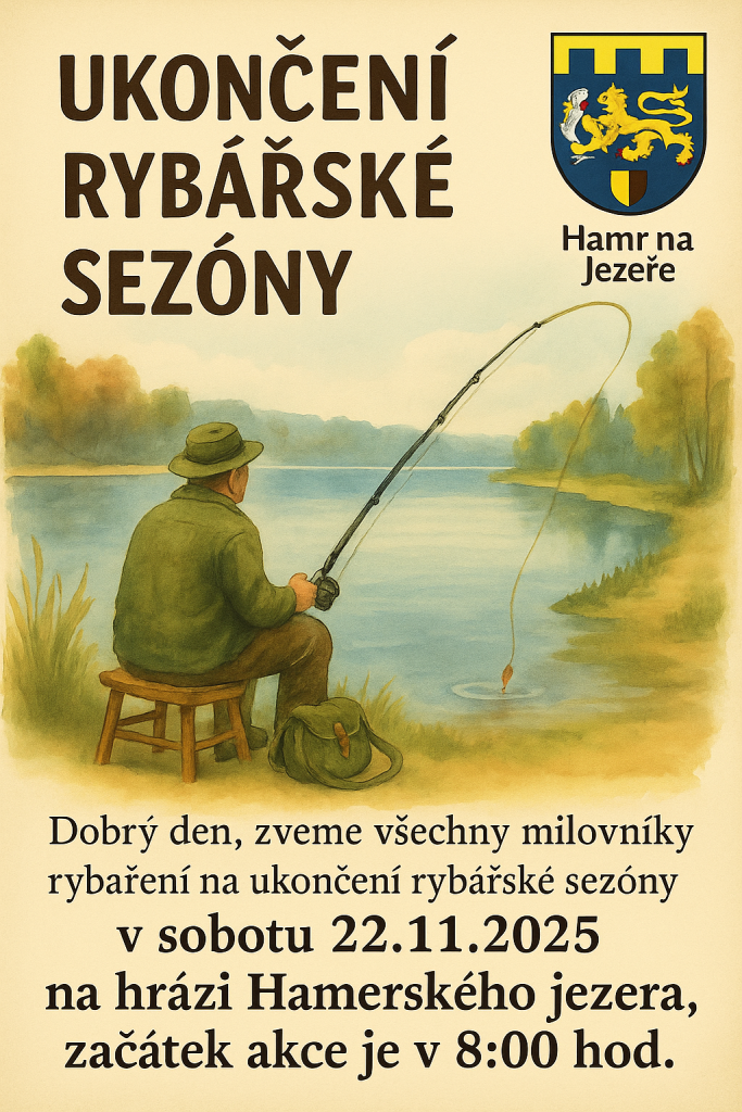 Dobrý den, zveme všechny milovníky rybaření na ukončení rybářské sezóny 2025, které se bude konat v sobotu 22.11.2025 na hrázi Hamerského jezera, začátek akce je v 8:00 hod.